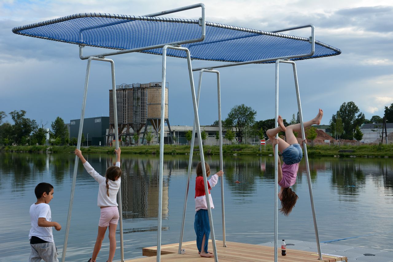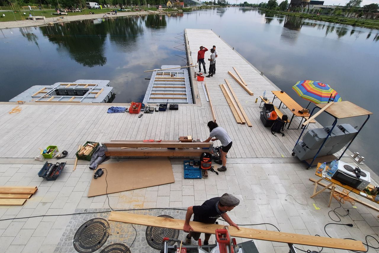 Am neuen Strand am Grünanger in Liebenau wird orizzontale im Juni 2021 FLUSSFLUSS – Castaway on the Mur bauen (in Kooperation mit dem Jugendzentrum Grünanger und interessierten BewohnerInnen): „Die BewohnerInnen werden eingeladen, gemeinsam zu träumen und ein schwimmendes System von Plattformen zu bauen.“