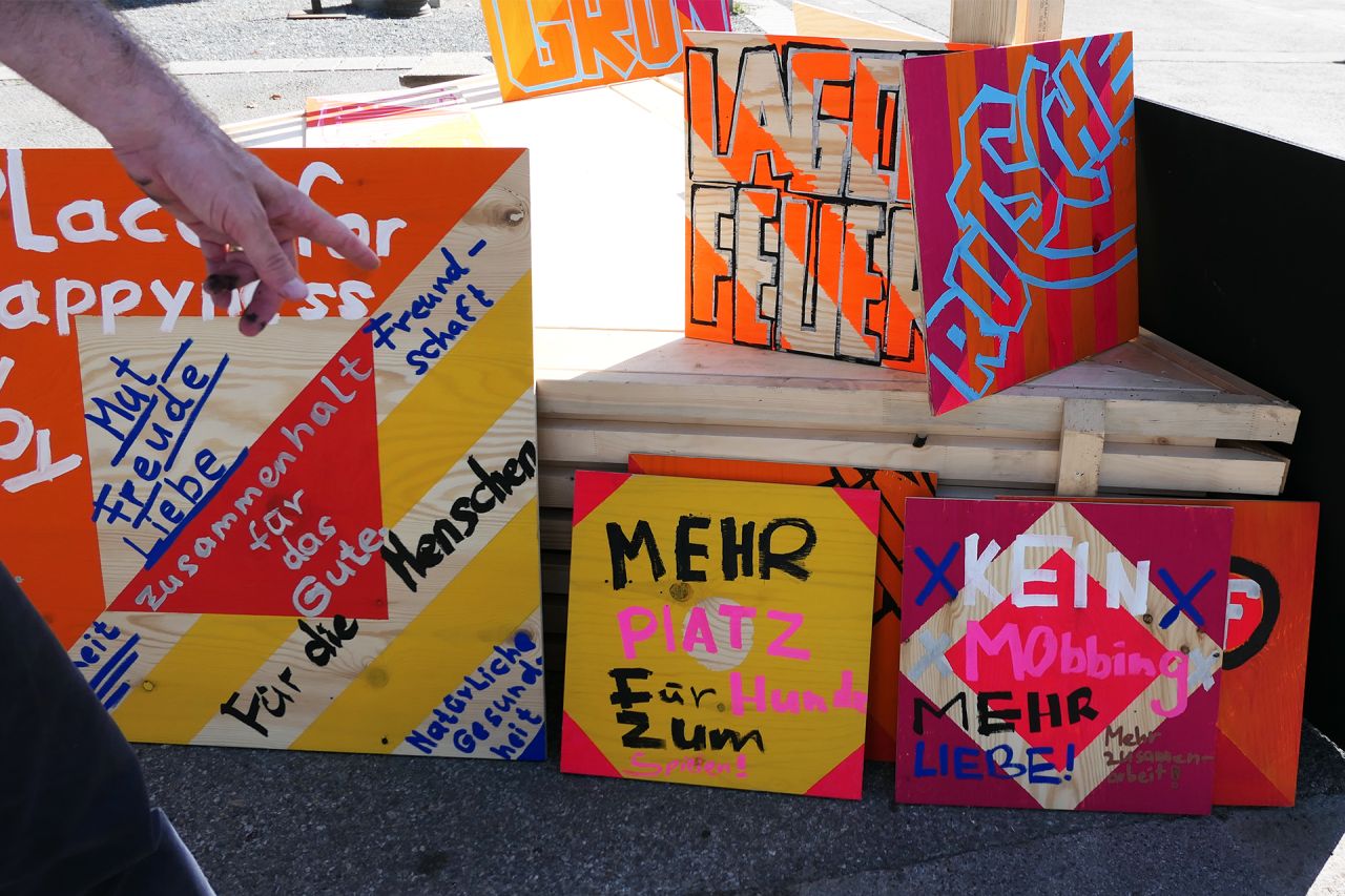 Für PLATZEN werden public works und Studio Magic spezielle Objekte am Hauptplatz in Andritz installieren, die zur Teilnahme anregen und den Platz kurzfristig transformieren und um-wünschen: Ein wandernder Turm, offene Workshops zur Wunsch-Schild-Produktion sowie zum Bauen von Platz-Aneignungs-Möbeln. Zudem laden sie zur “Demonstration der Wünsche” ein, einem Rundgang mit Jimi Lend, der Historie und Wunschdenken miteinander verschmilzt.