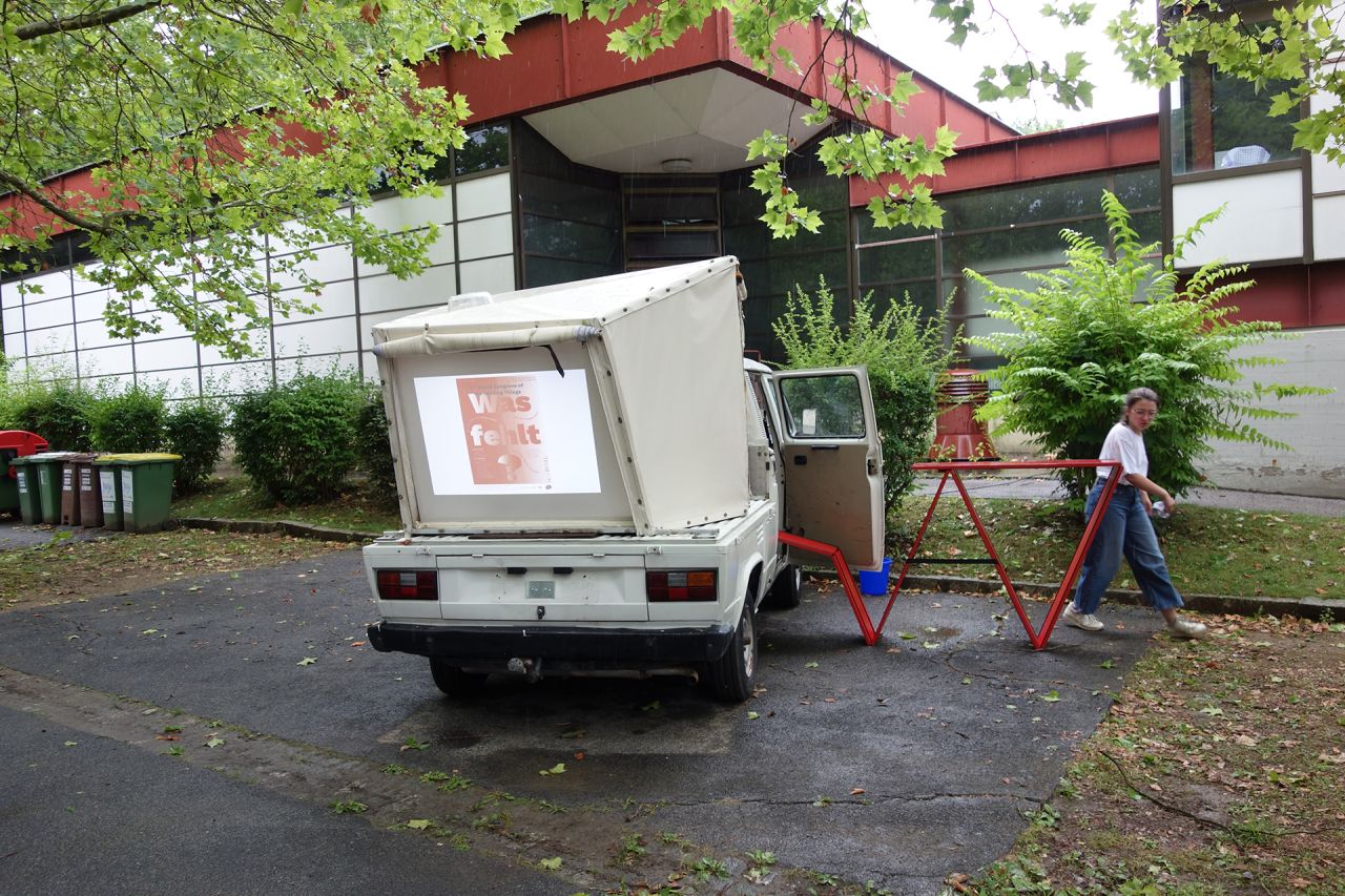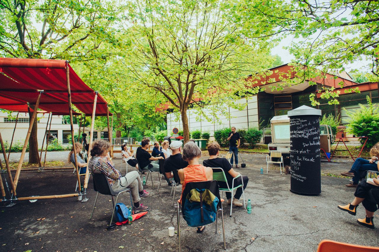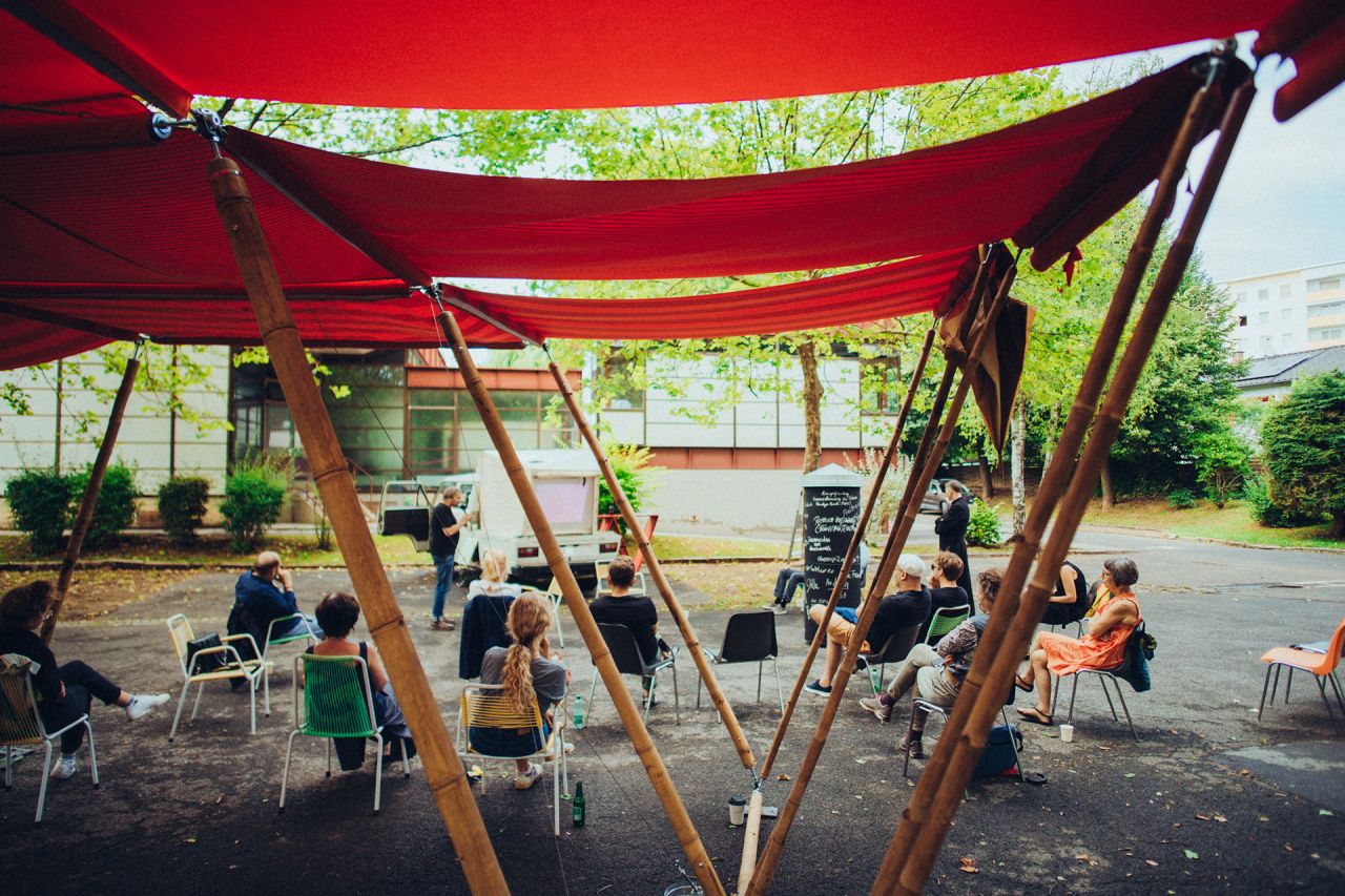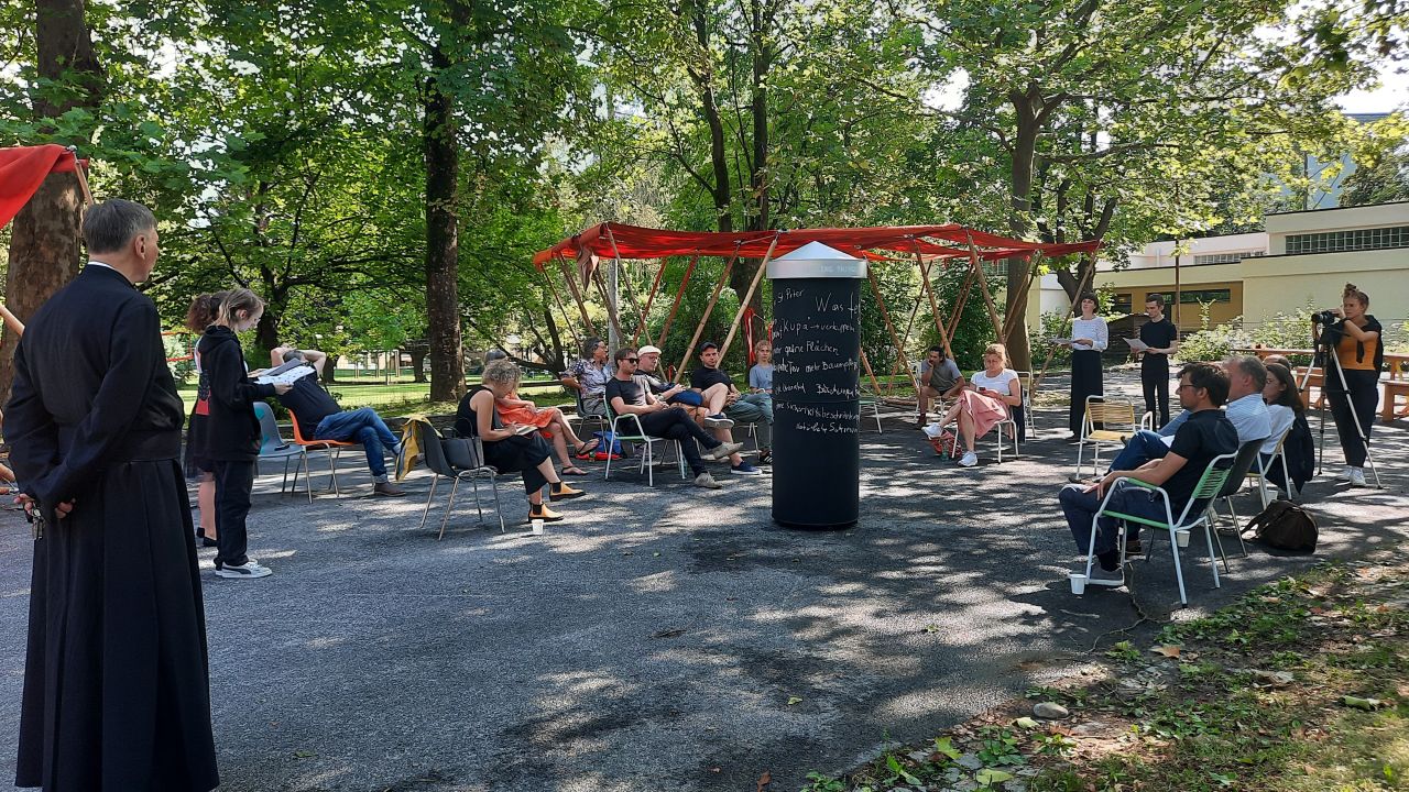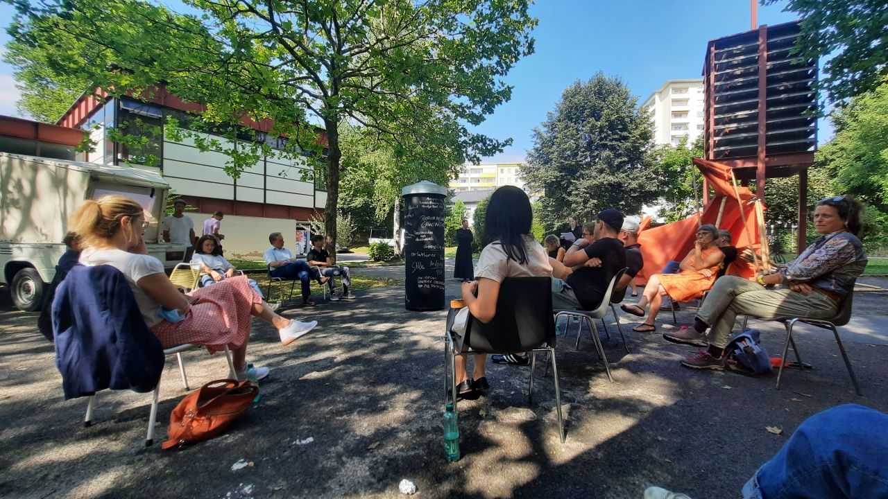 From July 31-Aug.1, 2021, transparadiso transformed the car park of St. Paul’s Parish (Eisteichsiedlung estate in Waltendorf) into an informal congress centre for the Third World Congress of the Missing Things (in cooperation with St. Paul’s Parish/ Priest Paul Scheichenberger).