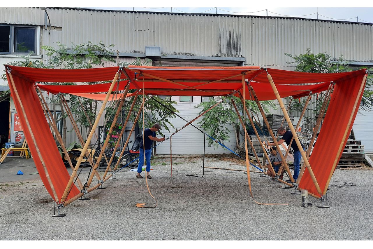 For the congress transparadiso transformed the car park of St.Paul parish with the BambooKaza as foldable canopies into an informal congress centre, which will be available for further use by the community/district after the congress to discuss conflict issues.