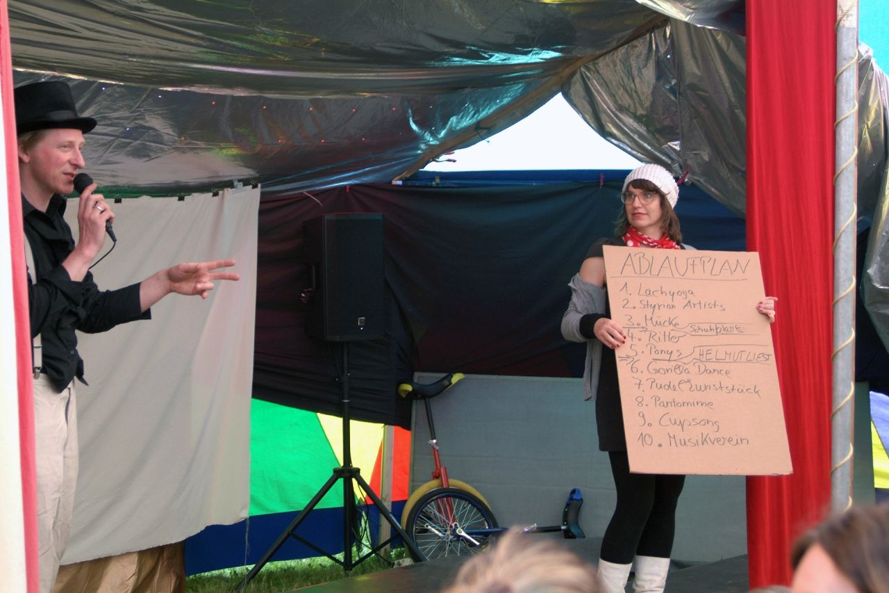 Die Videoinstallationen "Just journey with them" im Wohnmobil und "The ShowShow" im kleinen Zirkuszelt waren vom 16.–25. Mai 2014 täglich von 16 bis 22 Uhr geöffnet, dazwischen: "Sideshow für alle".