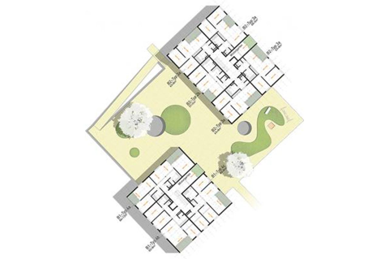 Jeder Cluster besteht aus ca. 40 Wohneinheiten und schafft eine spezifische Identität und Intimität durch differenzierte gemeinschaftliche Programme (Hobbyräume im UG, BewohnerInnenzentren, Spielplatzflächen...). Ein Cluster ist betreutem Wohnen gewidmet.