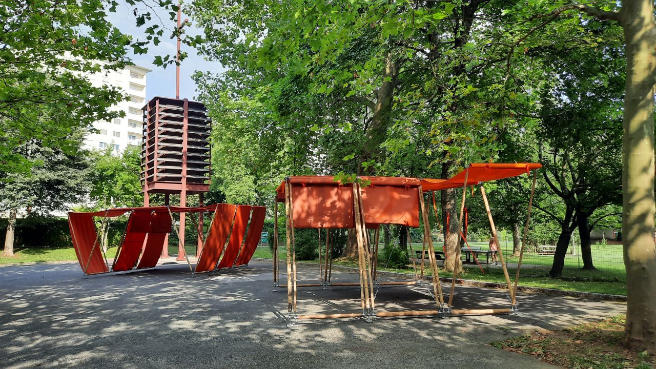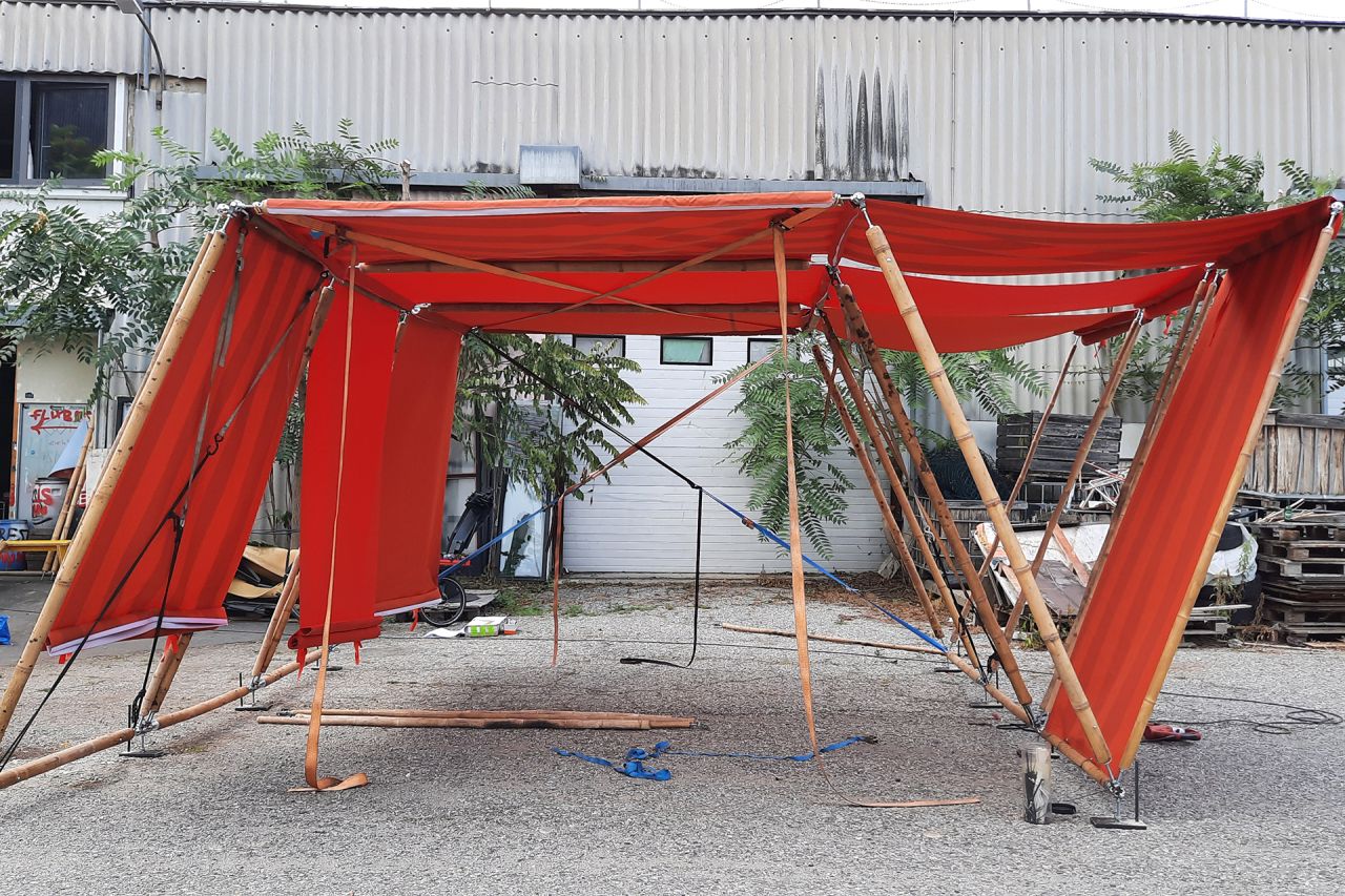 Für den Kongress transformierte transparadiso den Parkplatz der Pfarre St.Paul mit den BambooKaza als faltbare Überdachungen in ein informelles Kongresszentrum, die nach dem Kongress der Community/ dem Bezirk zur weiteren Nutzung zur Verfügung stehen wird um Konfliktthemen zu diskutieren.