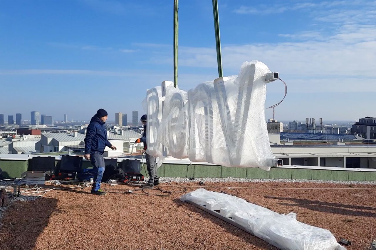 permanent art project by transparadiso for Quartier Bienvenue on the roof of the central building by transparadiso