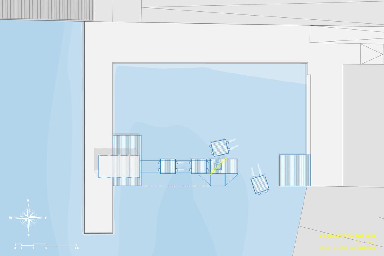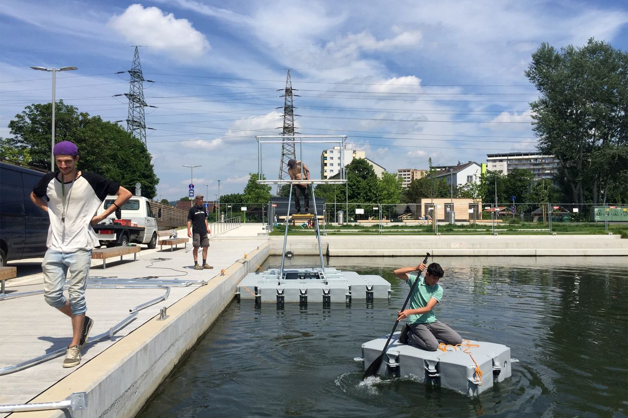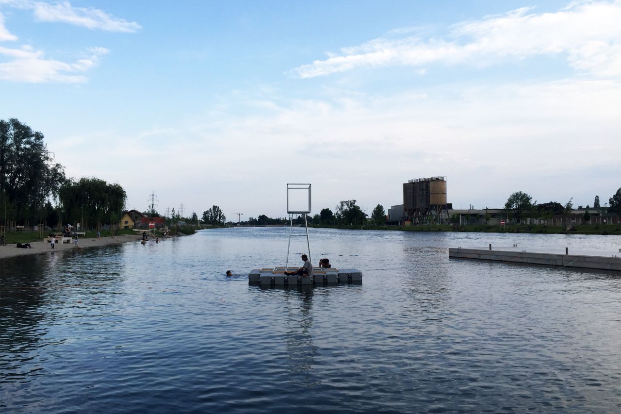 A buoy with the lettering FLUSSFLUSS will appear in the water as signal for the collective activation of the site. In addition, a covered platform for appropriation by the population will be established as a permanent public place for further events and everyday use. The construction phase is offered by orizzontale for informal participation, in order to discuss current issues of society and urban development connecting to ecological topics.