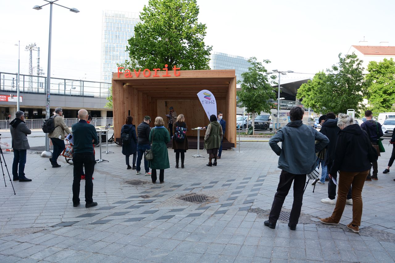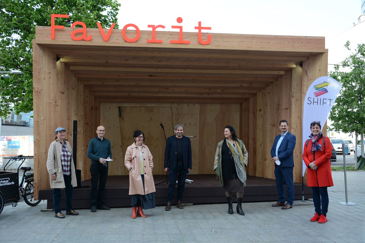 FAVORIT ist eine informelle Pavillon-Bühne zwischen „Hochkultur“ und „Volkskultur“. Von Mitte Mai bis Ende September 2021 steht die Bühne am Sonnwendplatz/ am Beginn der Fußgängerzone Favoritenstraße (U-Bahnstation Hauptbahnhof) den AlltagsnutzerInnen sowie allen noch unentdeckten Talenten oder bereits bekannten Künstler*innen sowie Vereinen verschiedenster Sparten für Performances zur Verfügung.